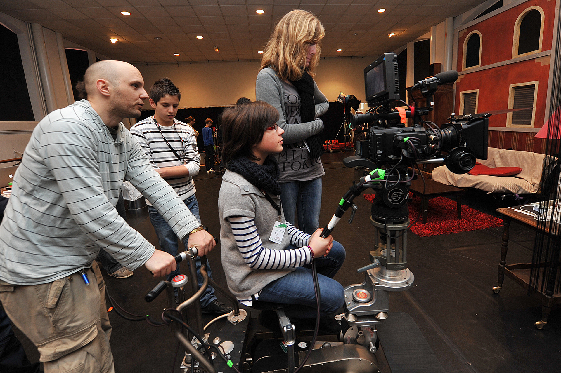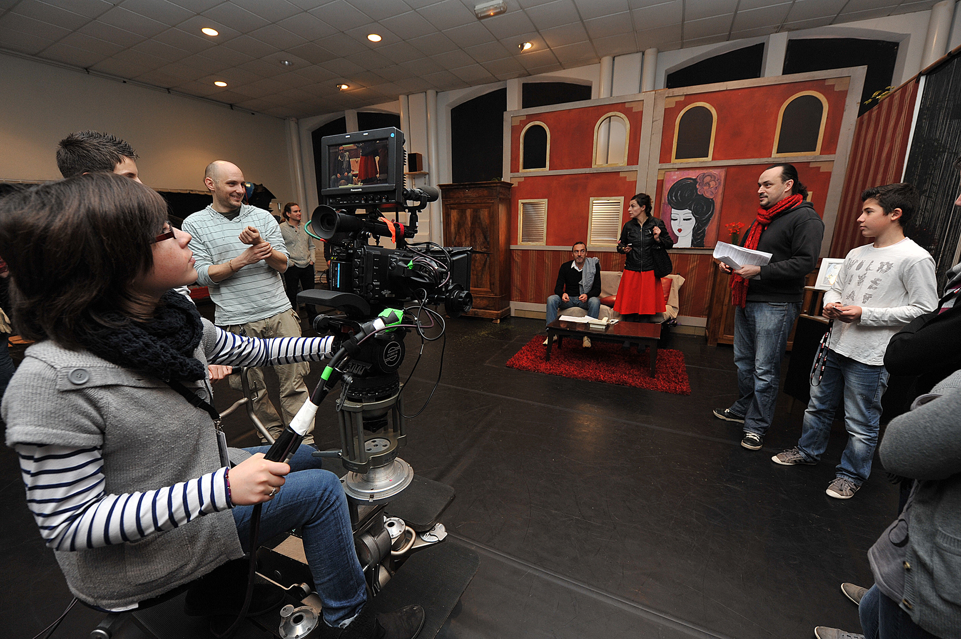 La découverte du plateau de tournage : sur une demie-journée, nous venons à 6 intervenants professionnels. En petit groupe, nous initions à une discipline (réalisation, image, lumières, son, direction d’acteurs), puis nous nous retrouvons tous sur le plateau de tournage pour réaliser une séquence. «Silence, moteur demandé, annonce et ça tourne !»